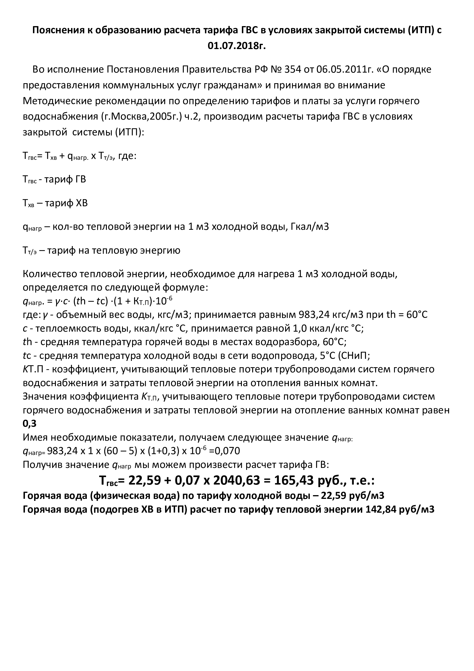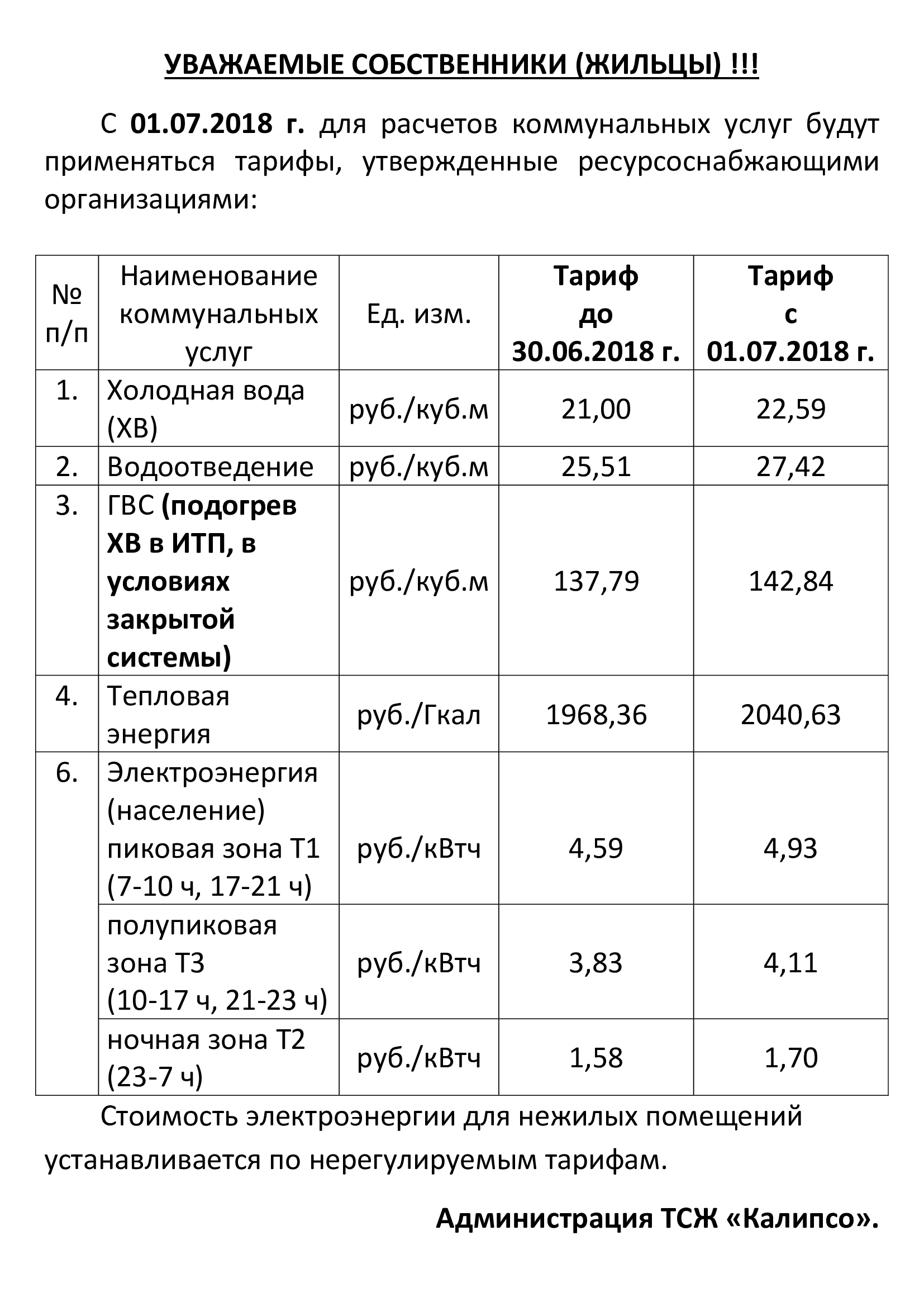 Тарифы на коммунальные ресурсы с 01.07.2018г.